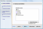 • mit dem Setup Wizard wird das Handy automatisch erkannt und die wichtigsten Einstellungen vorgenommen.