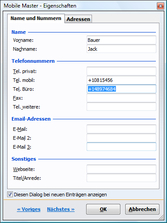 - Editieren Sie Ihre Kontaktdaten direkt in der Tabelle oder einem eigenen Dialog; Auch das Editieren mehrerer Kontakte gleichzeitig ist möglich.